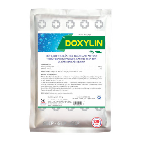 * Trên cá: Trộn vào thức ăn liên tục trong 5 - 7 ngày trong trường hợp cá bị gan, thận mủ, lở loét, đốm đỏ, đốm trắng, đỏ vòm miệng, tuột vảy, xuất huyết toàn thân, sưng chướng bụng, trắng đuôi, nhiễm trùng đường tiêu hóa với liều: 1 g / 1 kg thức ăn.