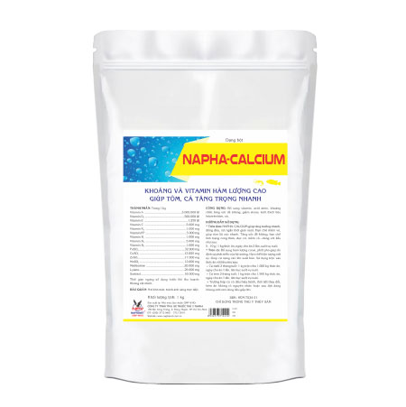* Trên tôm: NAPHA-CALCIUM giúp tăng trưởng nhanh, đồng đều, rút ngắn thời gian nuôi. Hạn chế mềm vỏ, giúp tôm lột xác nhanh. Tăng sức đề kháng, hạn chế tình trạng cong thân, đục cơ, mềm vỏ...dùng với liều như sau: