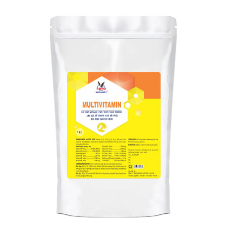 Vitamin A, D3, E, B1, B2, B5, B6, C, Folic acid, Kẽm sulfate, Mangan sulfate, Dextrose.