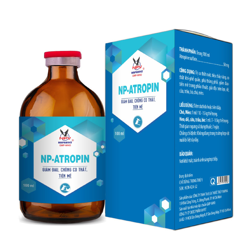 Trị co thắt ruột, tiêu chảy nặng, co thắt khí-phế quản, phù thũng phổi, giảm đau-tiền mê trong phẫu thuật, giải độc trên lợn, dê, cừu, trâu, bò, chó, mèo.